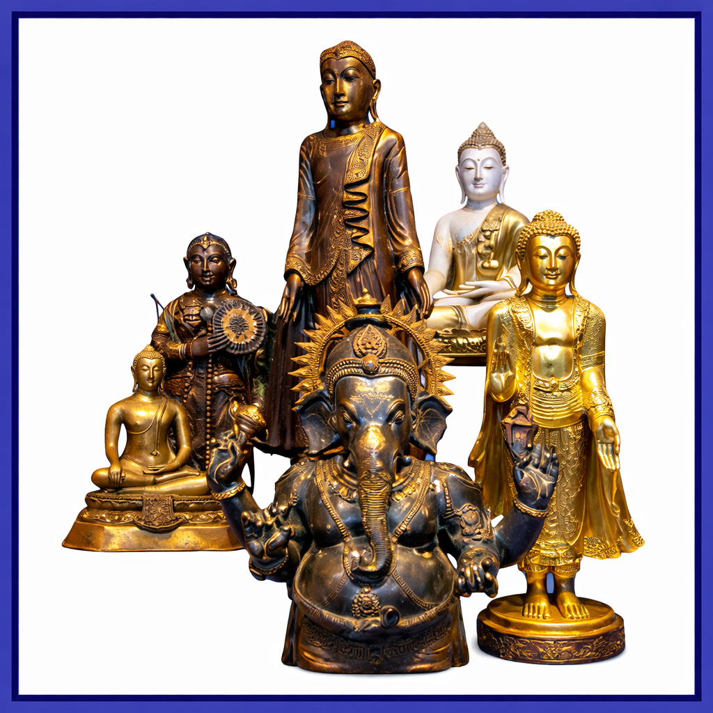 Ein besonderer Schwerpunkt liegt auf Buddha Figuren und Götterfiguren wie Ganesha und weiteren Gottheiten. Auch Elefanten, Tierfiguren, kunstvolle Bronzestatuen und Speckstein-Figuren bringen fernöstliche Harmonie in Wohnräume, Praxen oder Meditationsbereiche.