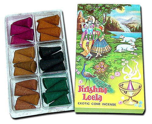 Start / * Räucherwerk * / * Räucherstäbchen * / Krishna Leela Exotic Incense / * Krishna Leela * Duft-Kegelmischung 24 Kegel sortiert